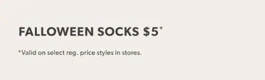 Hurry! Shop in store and get Falloween socks now for only $5.