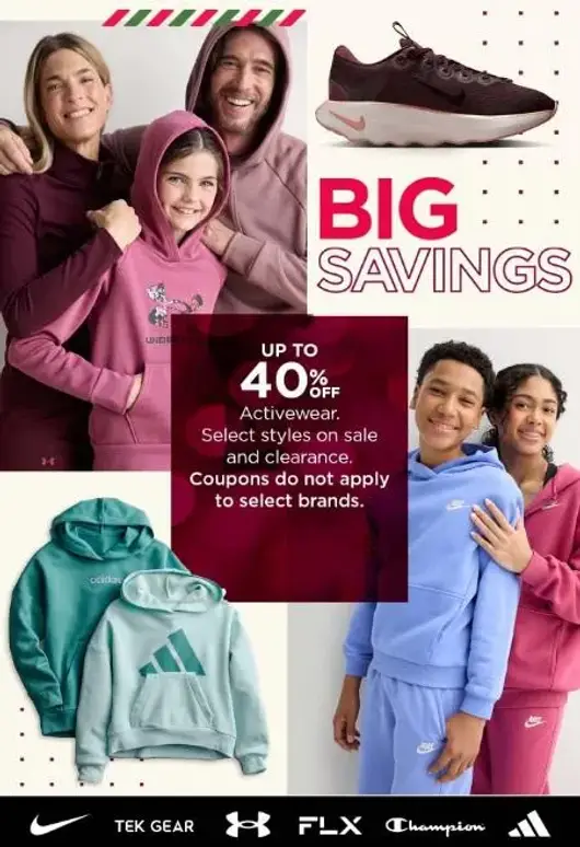 Stop by and get up to 40% off activewear in store for a limited time.